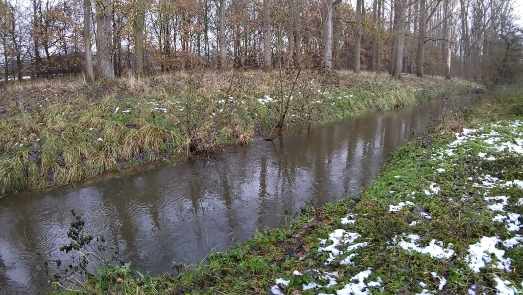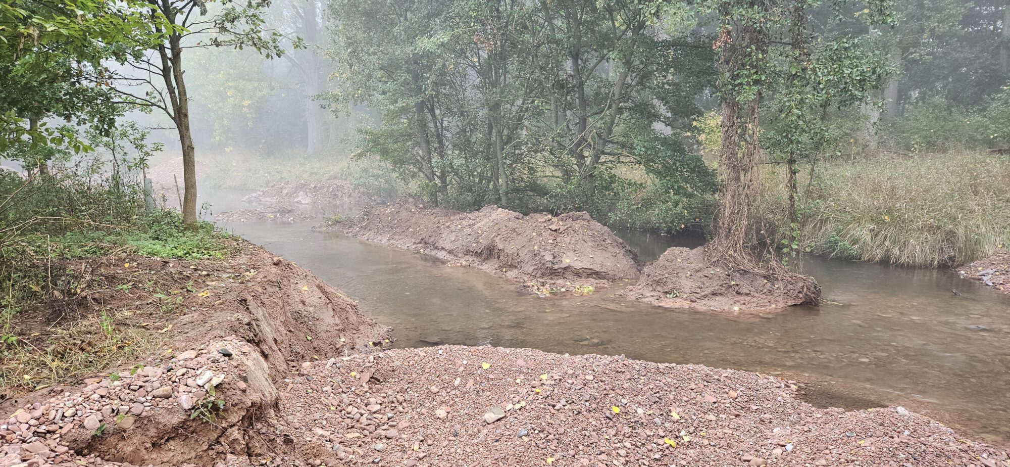Im Bereich der Nordhessenhalle entstand ein neues Nebengerinne mit hohem Eigenentwicklungspotential im rechten Vorland, das als Hochflutrinne angelegt wurde und bereits bei kleineren Abflüssen Wasser führt. Auch hier wurden Totholzstrukturen und Kiesdepots integriert, sodass sich die Gewässerdynamik erhöht, natürliche Sedimentprozesse wieder einsetzen und vielfältige Strukturen für Tiere und Pflanzen entstehen. Die Kombination dieser Maßnahmen steigert die Strukturvielfalt, schafft neue Lebensräume, verbessert die Wasserqualität und stärkt die ökologische Funktion der gesamten Twiste-Aue – ein Gewinn für Natur und Umwelt, der weit über den Hochwasserschutz hinausgeht.